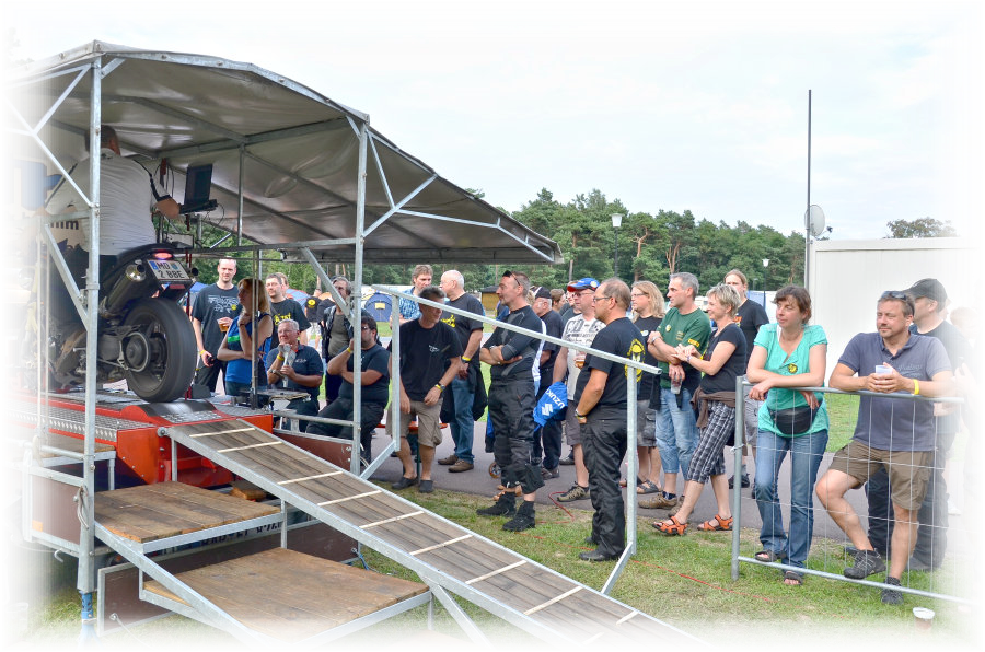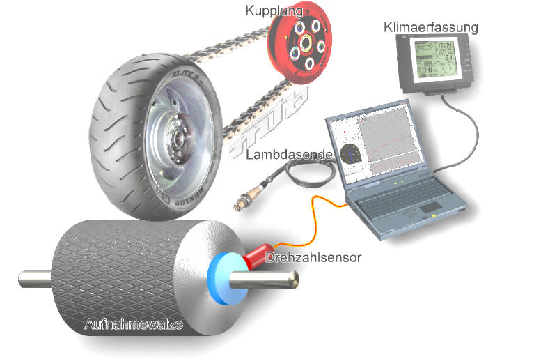 Das Hinterrad treibt eine Walze mit definiertem Massenträgheitsmoment