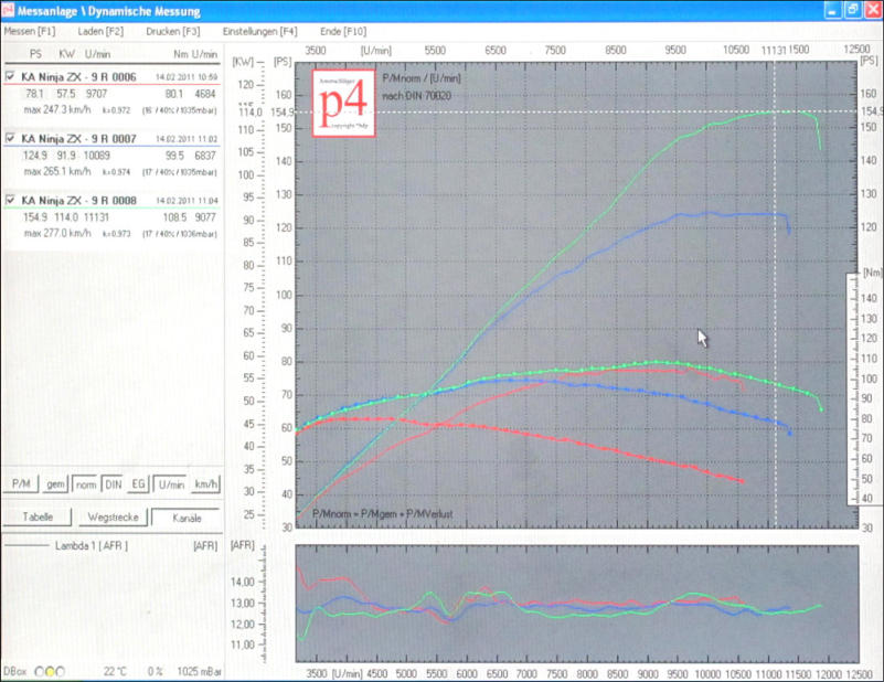 kann den Leistungs- und Drehmomentkurven die jeweiligen Lambda-